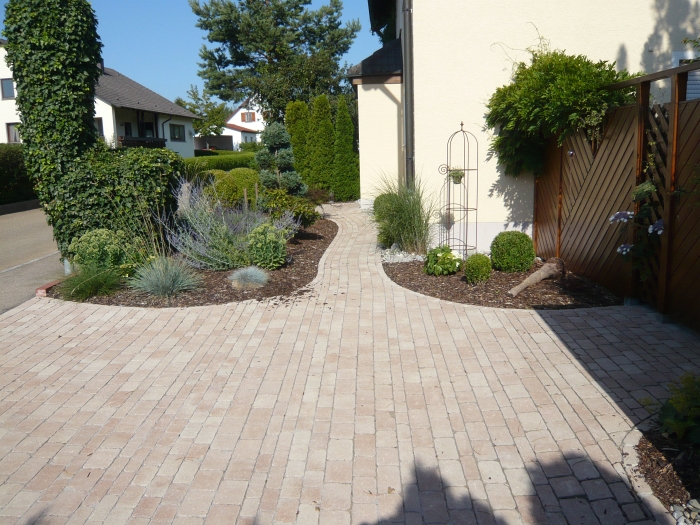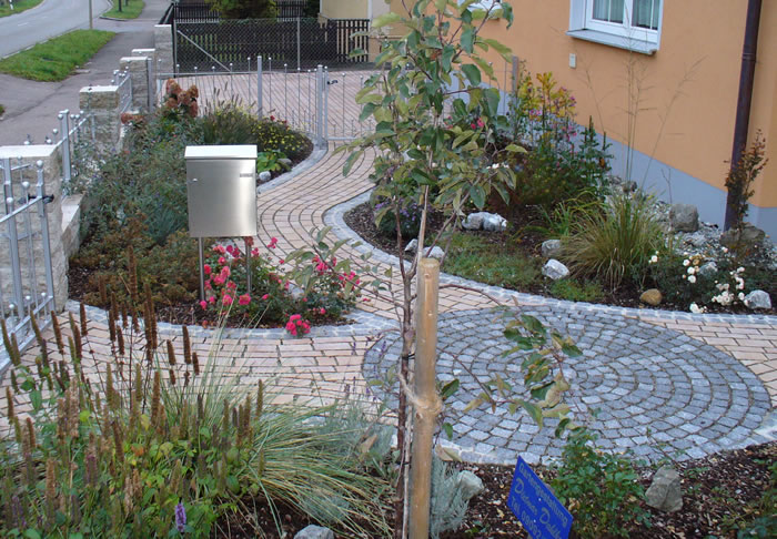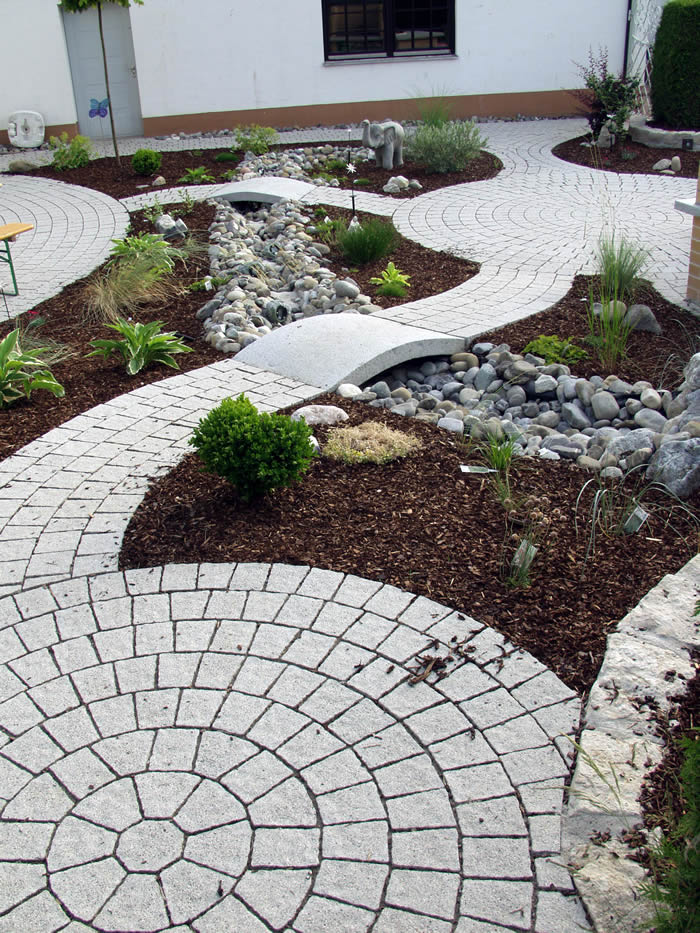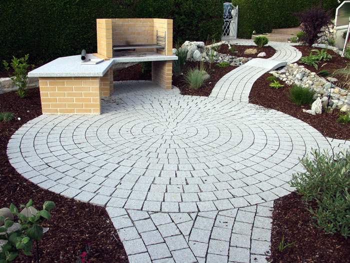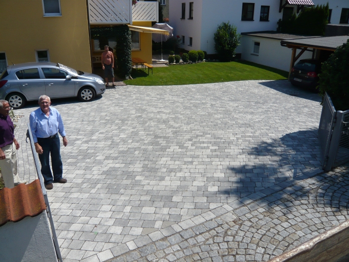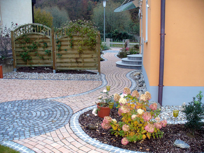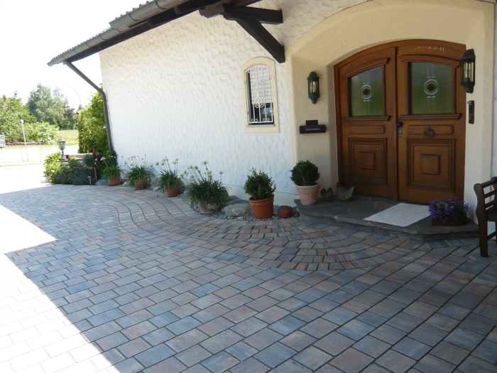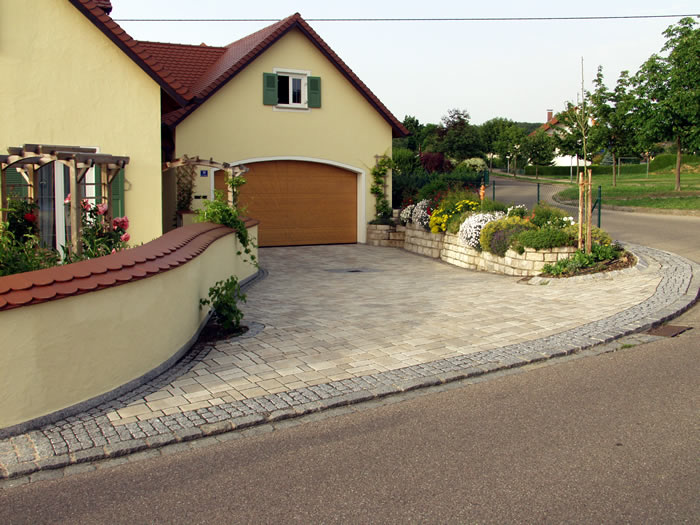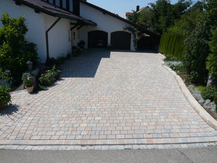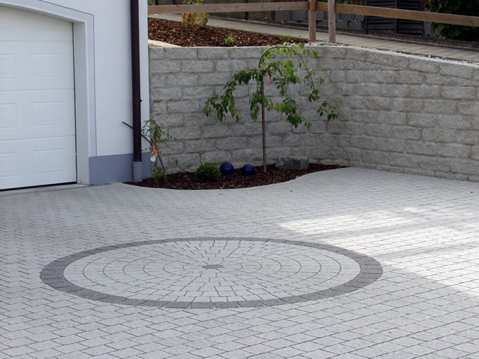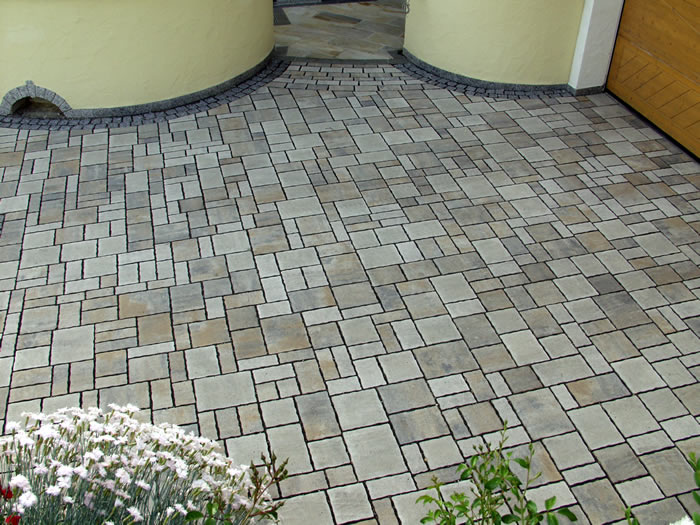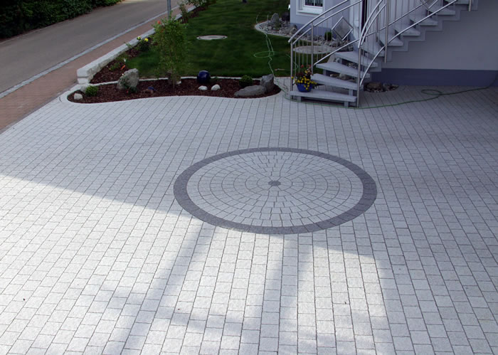 Die Verarbeitung von Natursteinpflaster lässt verschiedenste Verlege und Kombinationsmöglichkeiten bei der Gestaltung der Pflasterflächen zu.